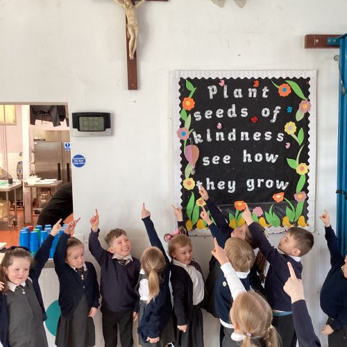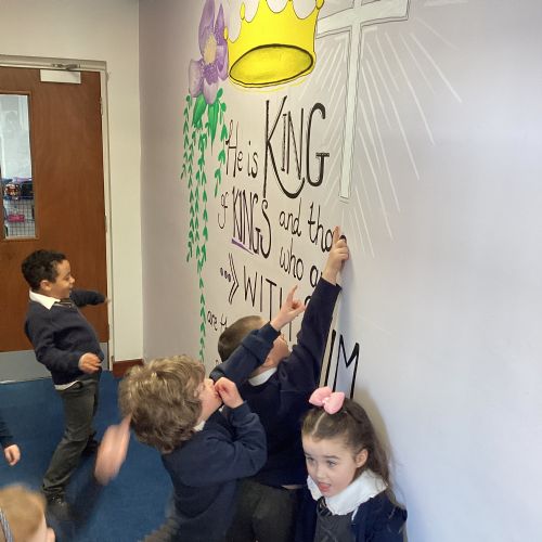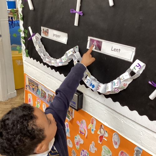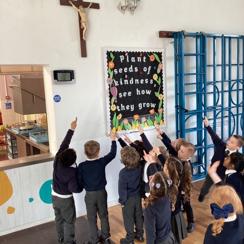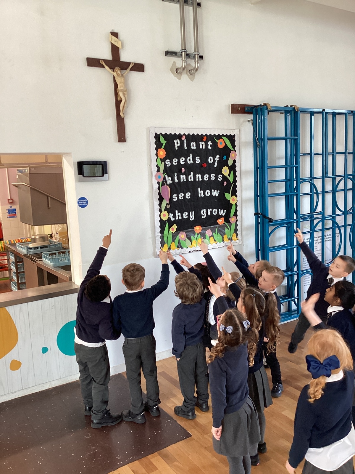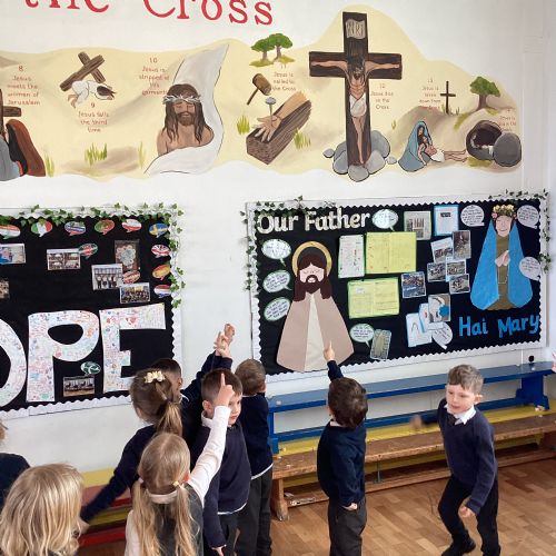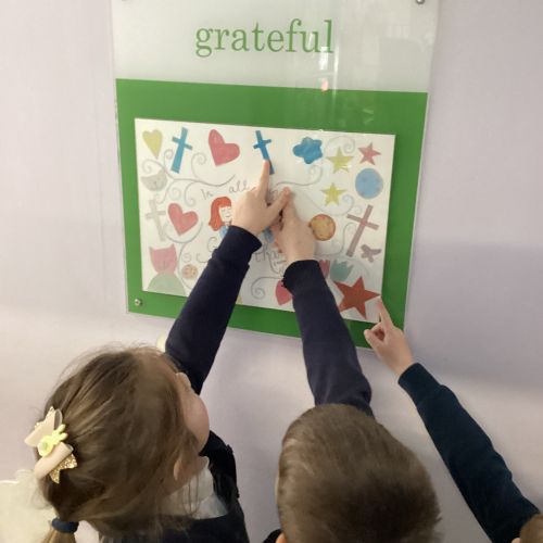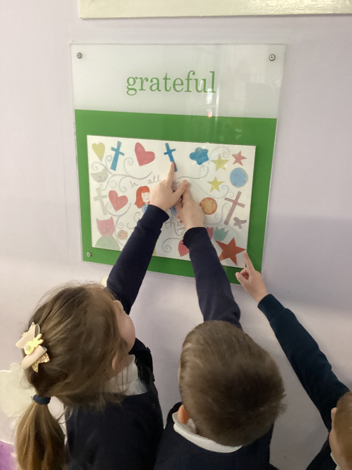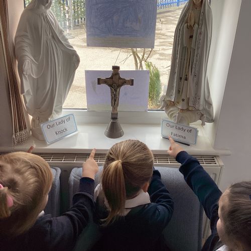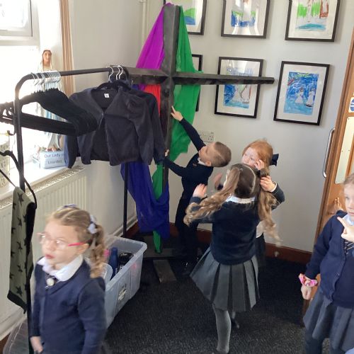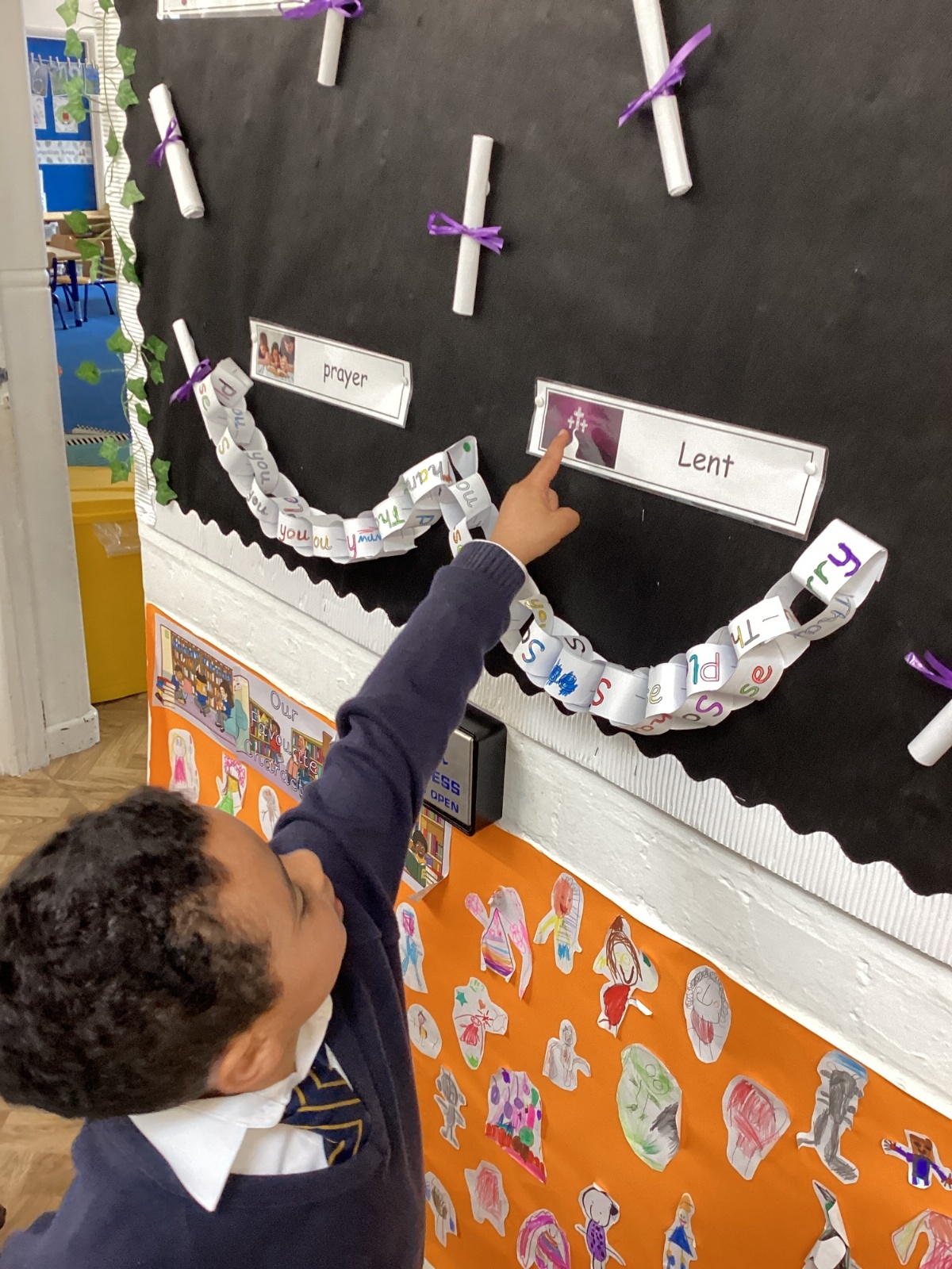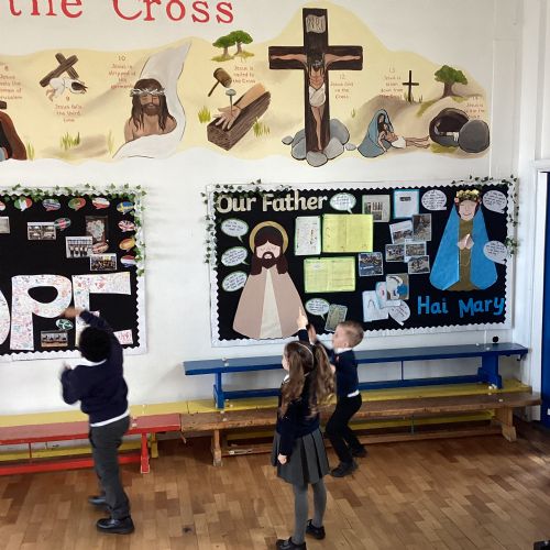 After reading about the events of Good Friday, we held a special prayer time. We discussed how Jesus died for us on the cross and how the cross is the special symbol of our faith. We went on a walk in our school environment to identify all the crucifixes and crosses that we can see.