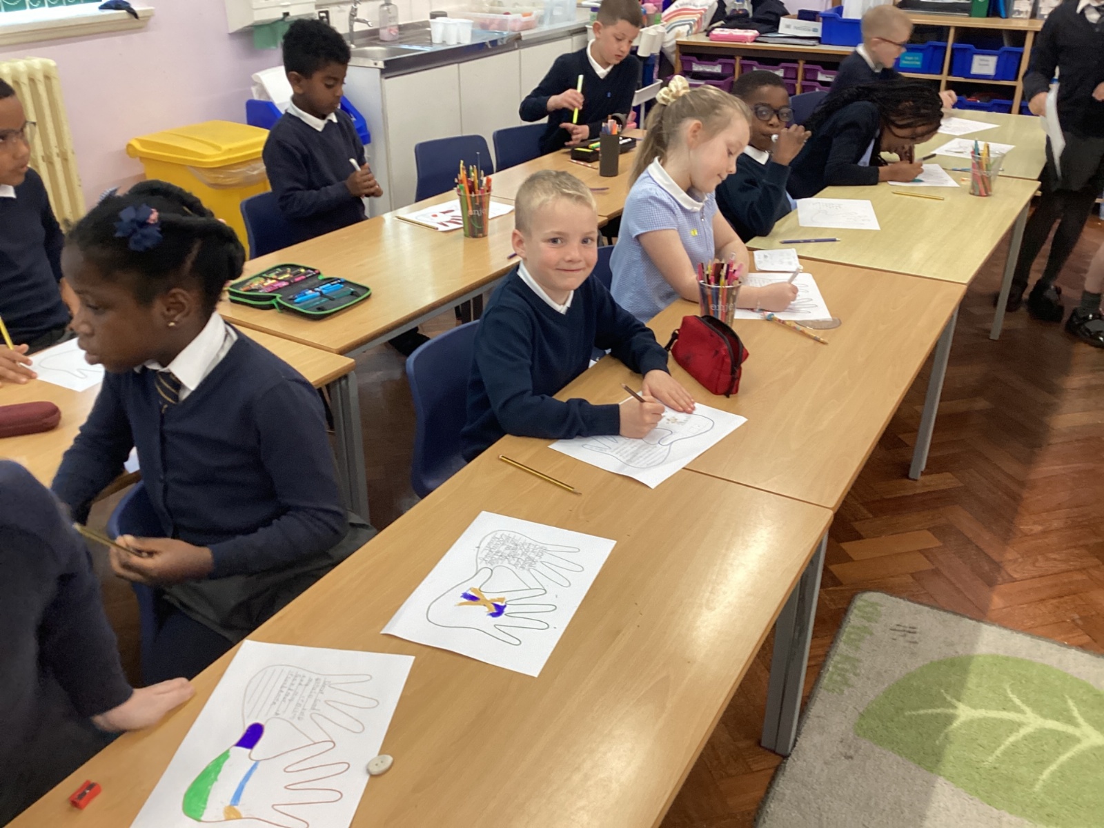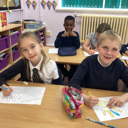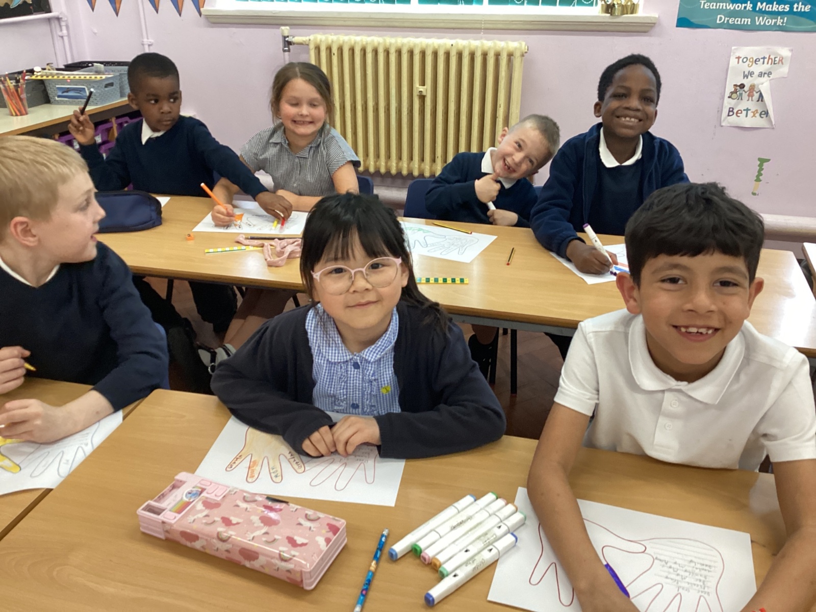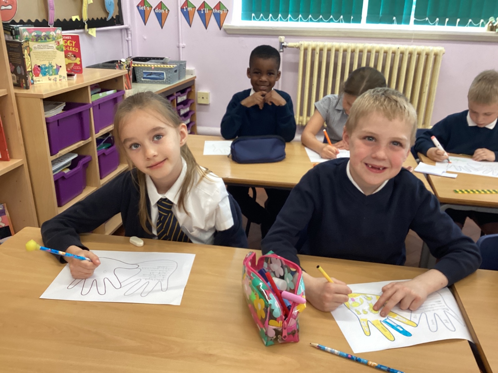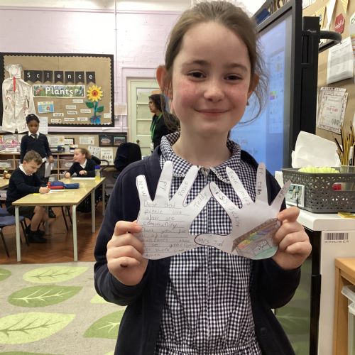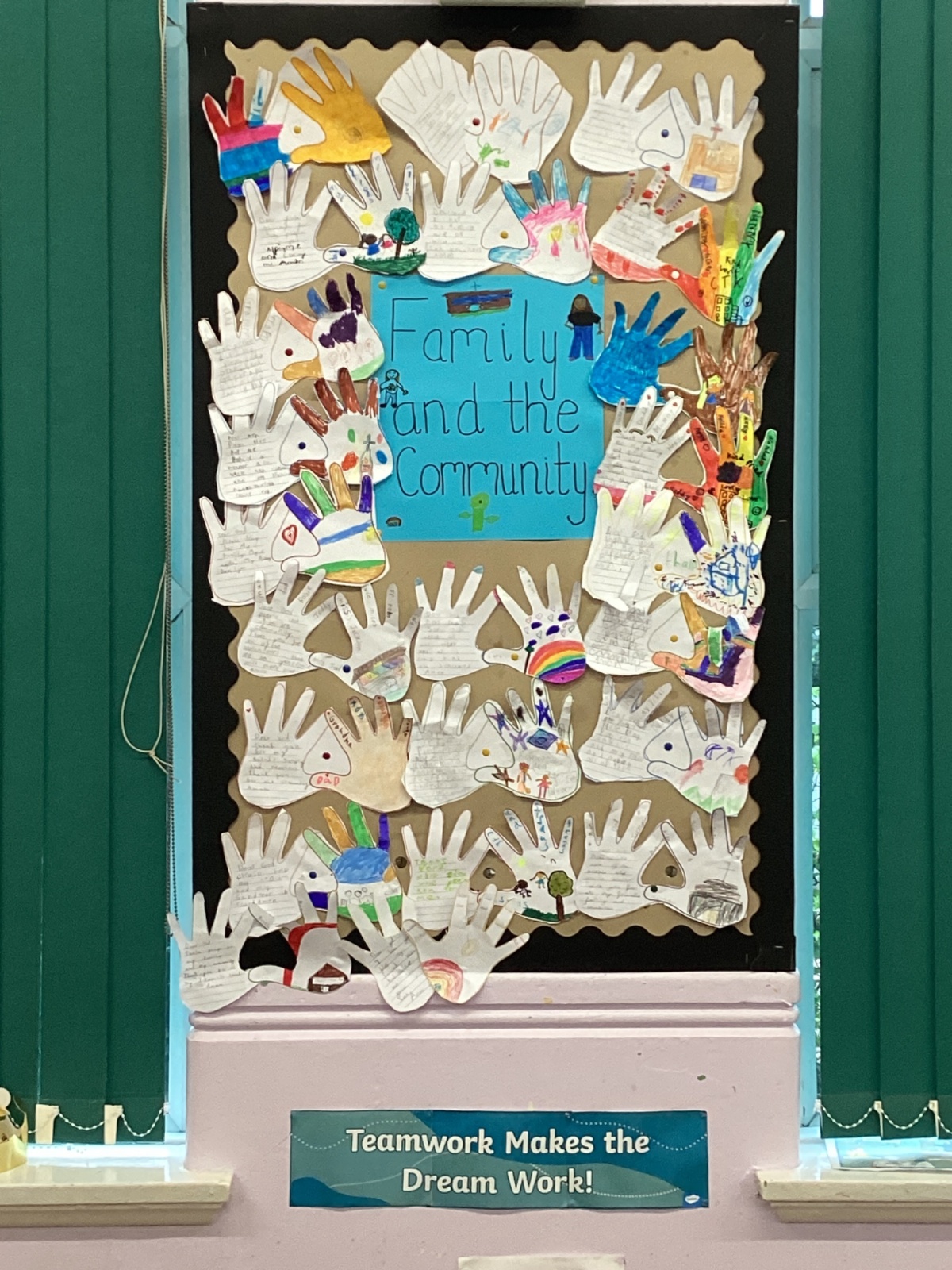 We have learnt about the importance of families and communities as part of Catholic Social Teaching. We wrote a thank you prayer, drew our community and wrote the names of people who help us.