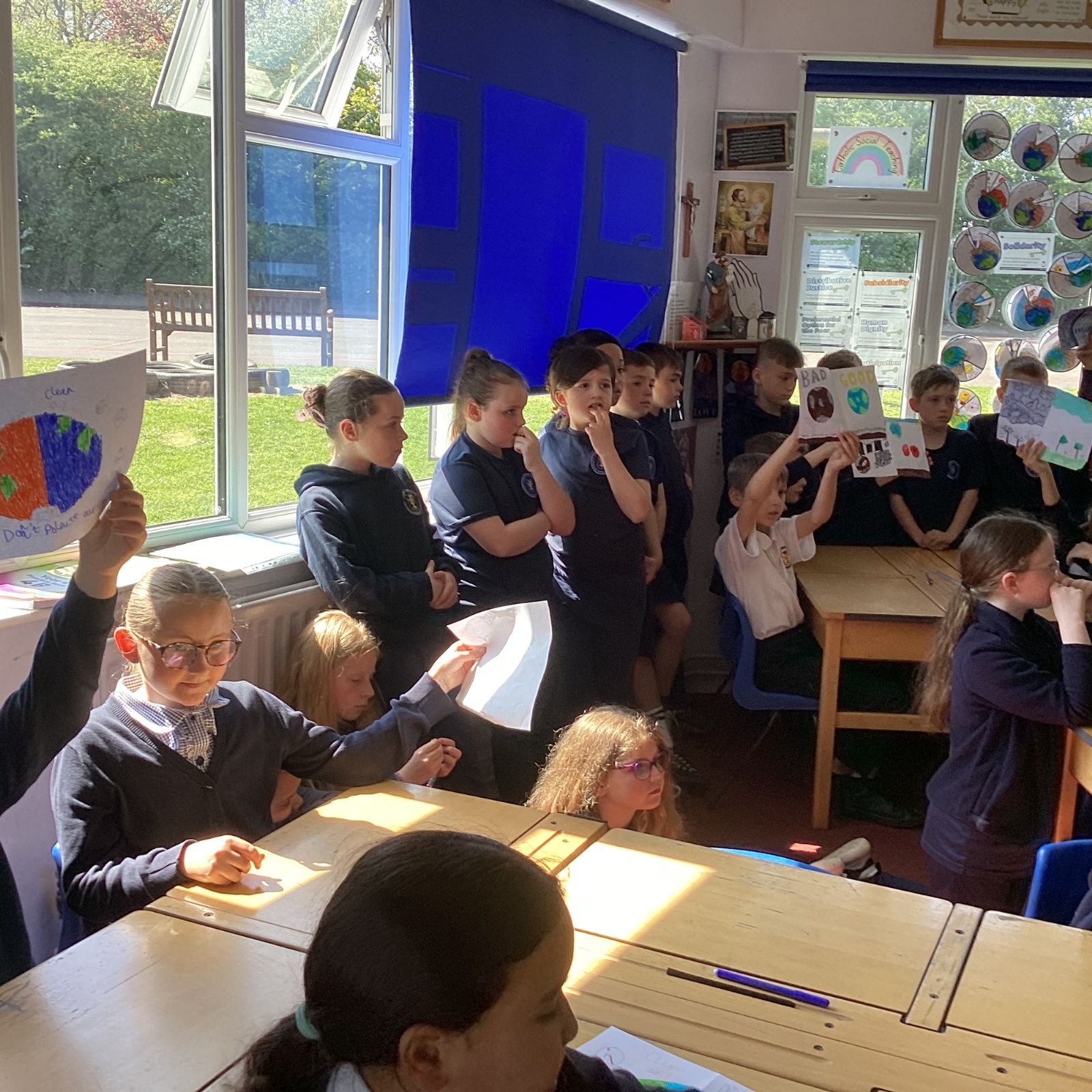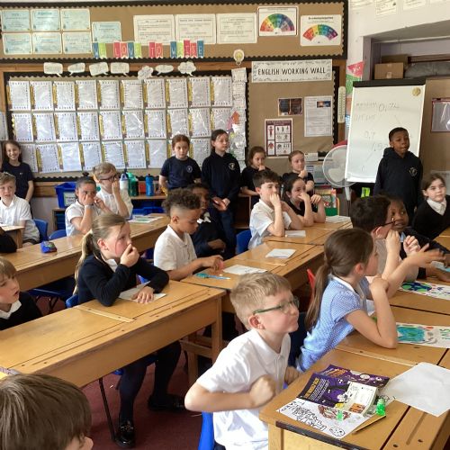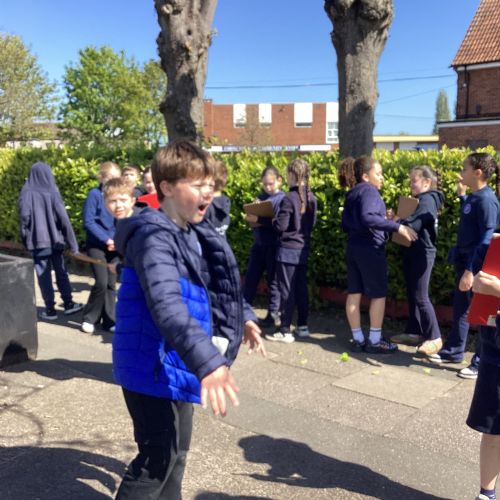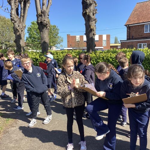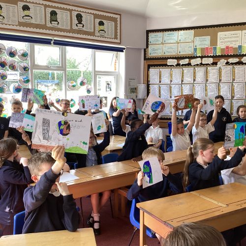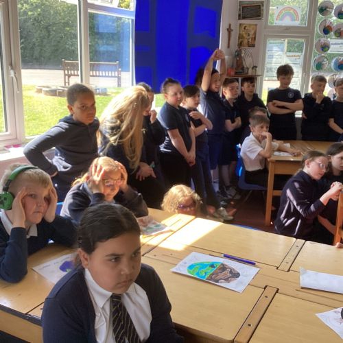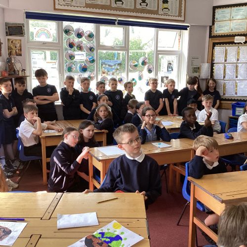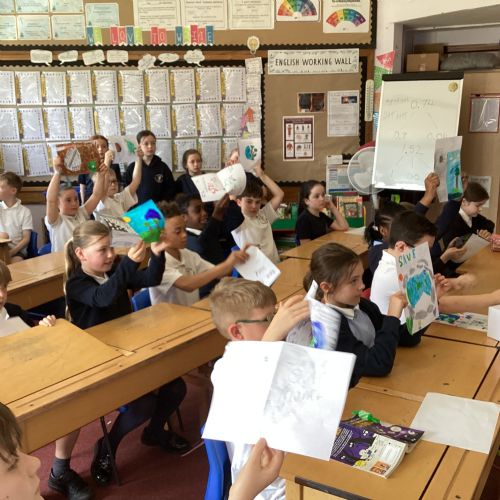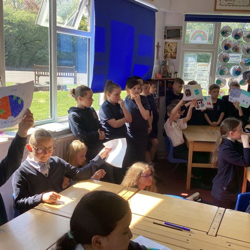 Today, with all the other primary schools in our MAC and Romero MAC, we celebrated Oracy Earth Day.   Each year group had a topic to explore. Year 4 looked at Traffic Pollution.  We started our day with a wonderful assembly to introduce our day. We made our way down to the Church to complete a traffic survey.  We designed some fantastic posters and our Year group Pledge.  We linked up with two other Year 4 classes at Corpus Christi to share our learning.  We are continuing to develop our oracy skills.