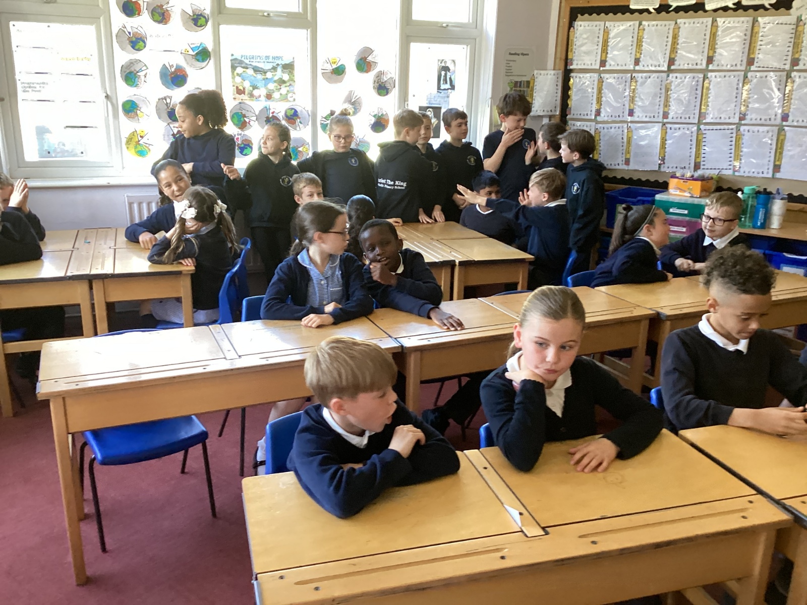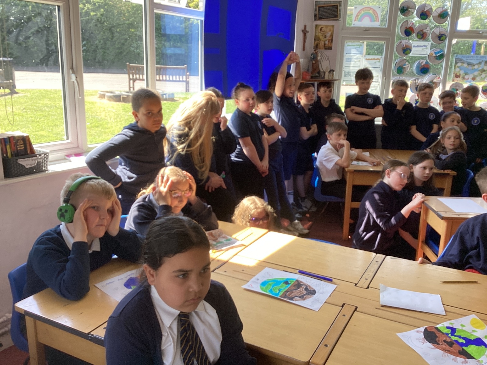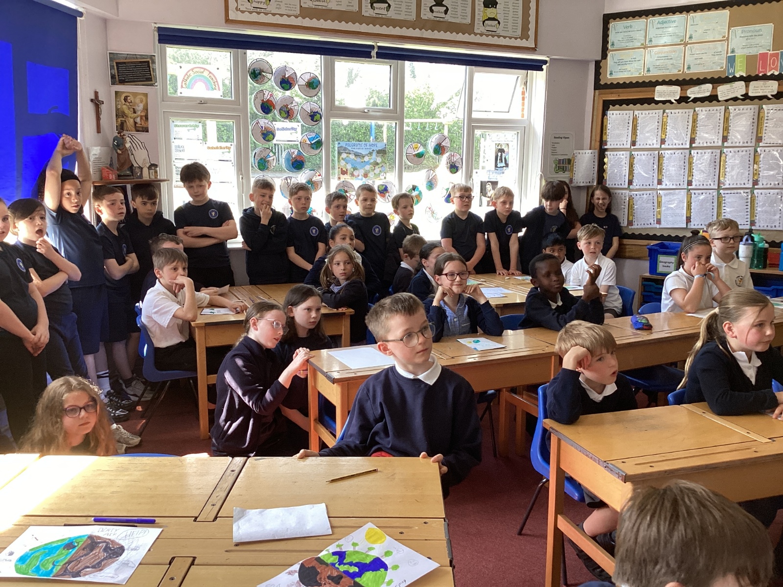 Today, with all the other primary schools in our MAC and Romero MAC, we celebrated Oracy Earth Day.   Each year group had a topic to explore. Year 4 looked at Traffic Pollution.  We started our day with a wonderful assembly to introduce our day. We made our way down to the Church to complete a traffic survey.  We designed some fantastic posters and our Year group Pledge.  We linked up with two other Year 4 classes at Corpus Christi to share our learning.  We are continuing to develop our oracy skills.