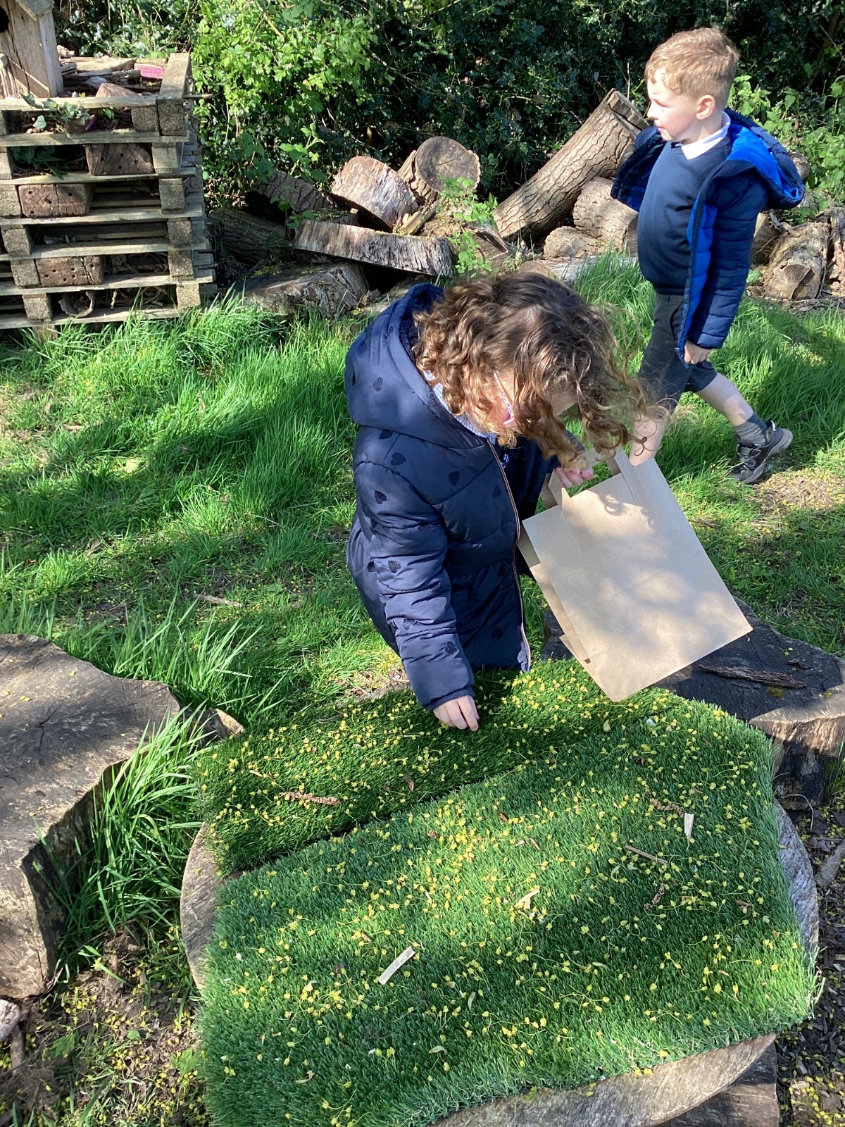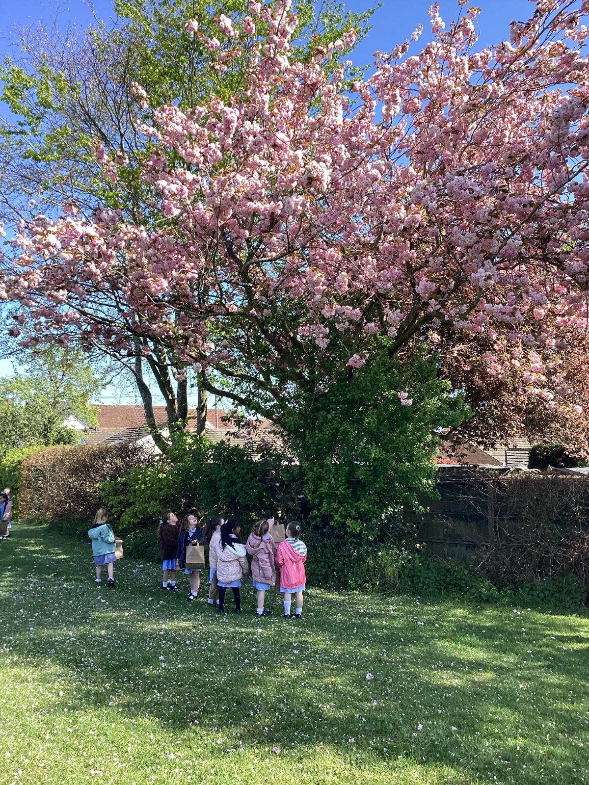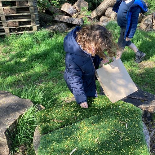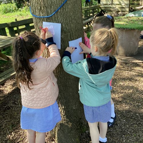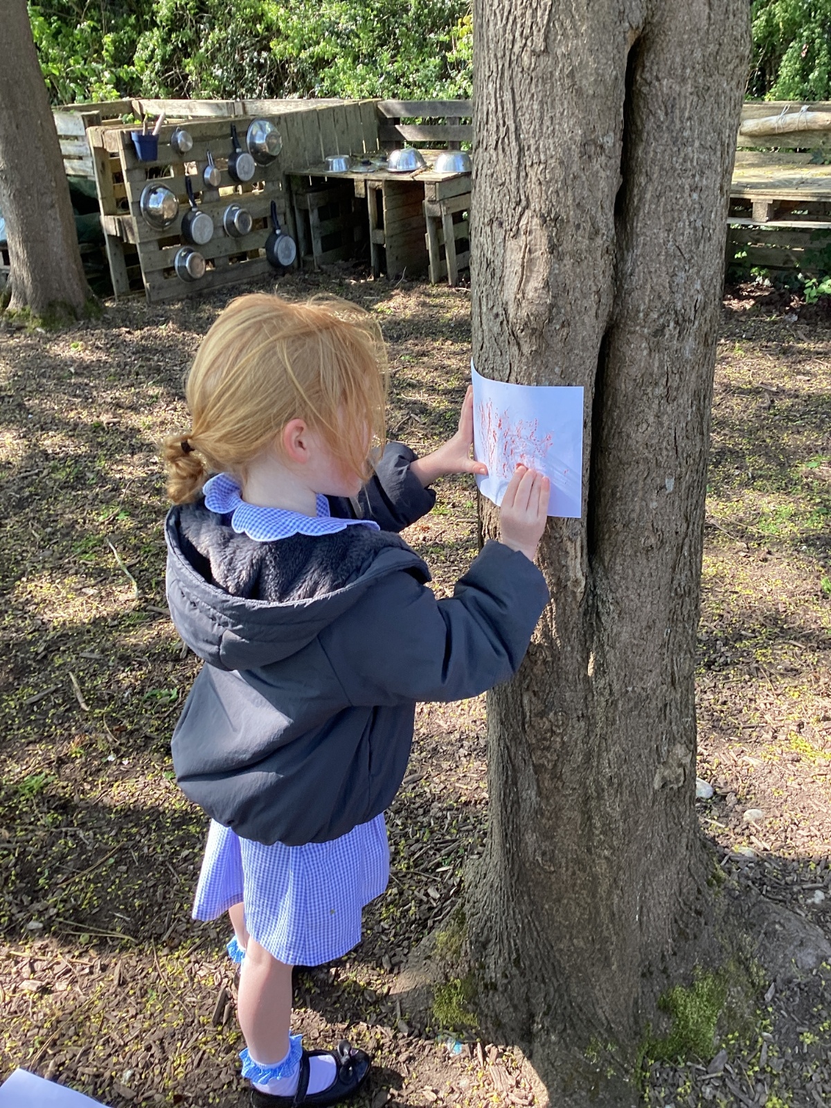 For Earth Day, we walked to Scots Lane site to learn more about how to look after our trees. We learnt about how important trees are for our climate and their special powers.  We used our senses to explore the area and we collected lots of natural treasures and did bark rubbings too. We also made some tree guardians to help look after our trees,