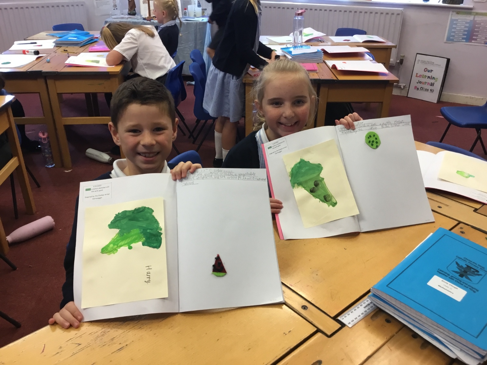 We used paint to create a detailed still life picture of fruit inspired by the Italian artist Caravaggio.   We went on to use material to make a vegetable picture inspired by the artist Michael Brennand-Wood.