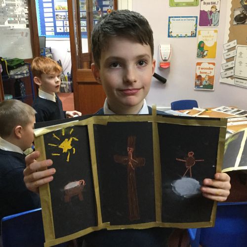 This morning, we produced some amazing triptych pictures using pastels and chalk - amazing pieces of art!