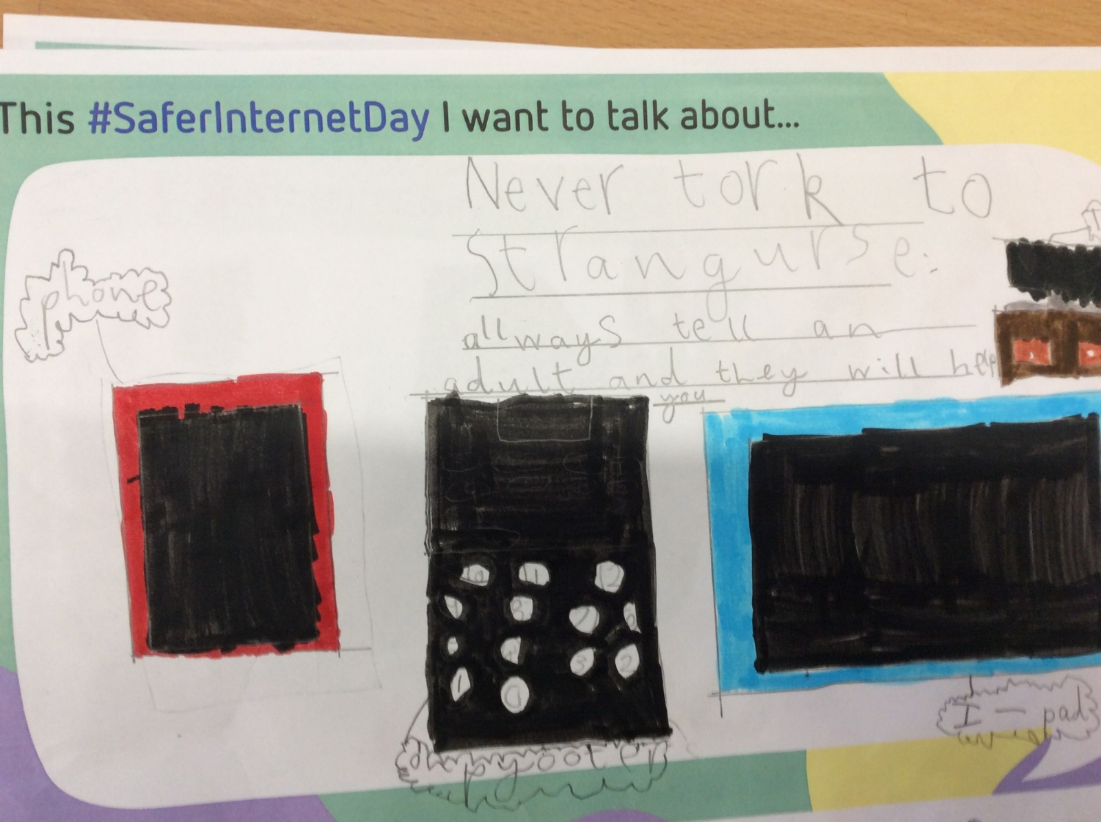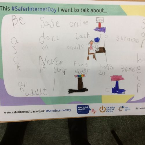 Pupils enjoyed learning about the importance of Internet safety on Safer Internet Day. We read the story 'Hanni and the Magic Window', spoke about why it is always important to talk to an adult when using technology, and also made Safer Internet Day posters.