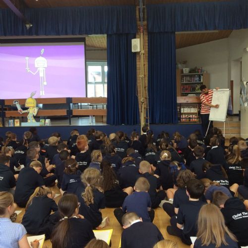 Children from Year 2-Y5 enjoyed an interactive workshop today with the ever-so popular brothers. They shared extracts from their new story and helped the children create their own character.